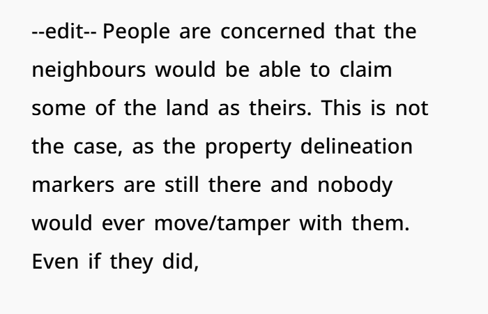 It didn’t take long for the neighbors to come back with a request. They asked if they could build a wooden fence on the family’s property to protect their privacy. The family didn’t mind—after all, they didn’t have any issues with their privacy, and they had already made plans to let the hedge regrow in a couple of years. They happily agreed to the request, as long as the neighbors paid for everything. The neighbors were willing to do that, and within a week, a fence was constructed.