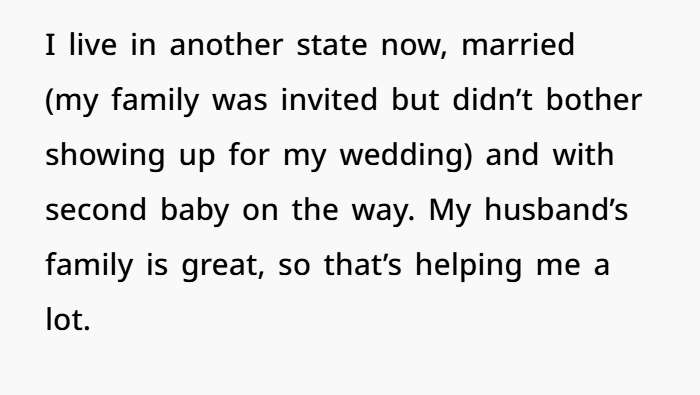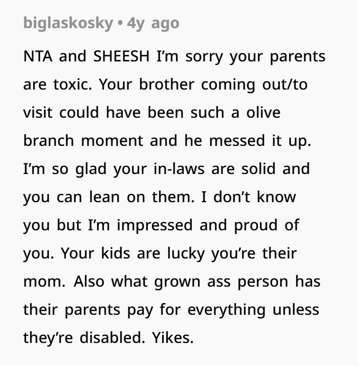 At the end of the day, I’m doing what’s best for me and my family. My kids deserve to be raised in an environment where they’re loved, supported, and not caught up in this toxic cycle of manipulation and control. If my family can’t accept that, then I guess we’re better off without them.