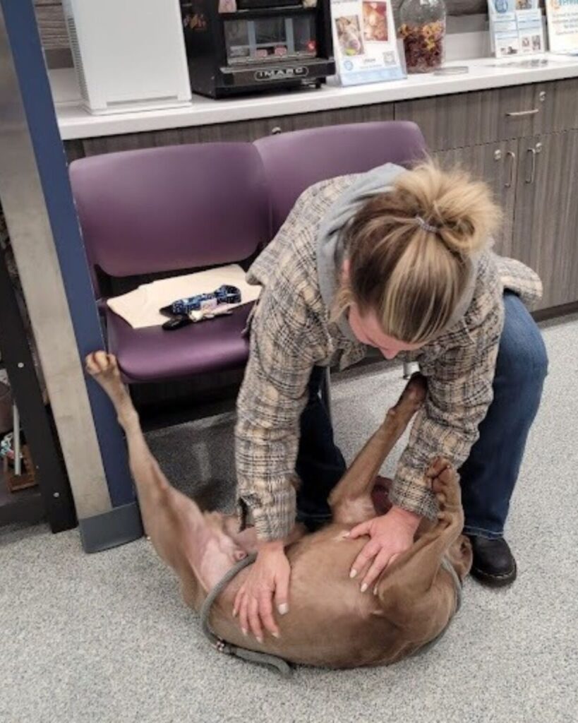 Within seconds, he was pressed up against her, nuzzling and pawing like he never wanted to let go. And honestly? No one in that room could hold it together. The shelter staff and volunteers were wiping tears, smiling through the emotion, completely caught up in this heartwarming dog reunion.