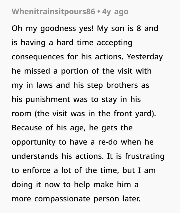 You’re doing the hard part of parenting: teaching consequences that stick. And in this case? You’re absolutely right to stand firm.