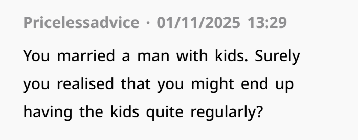 Your husband’s kids aren’t your responsibility alone. They’re his. Your sanity and rest matter, too. It’s okay to draw that line, to reclaim your weekends, and to refuse to feel guilty for needing peace.