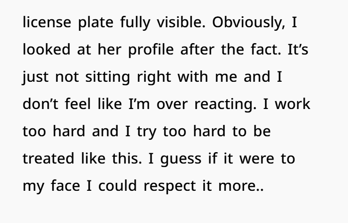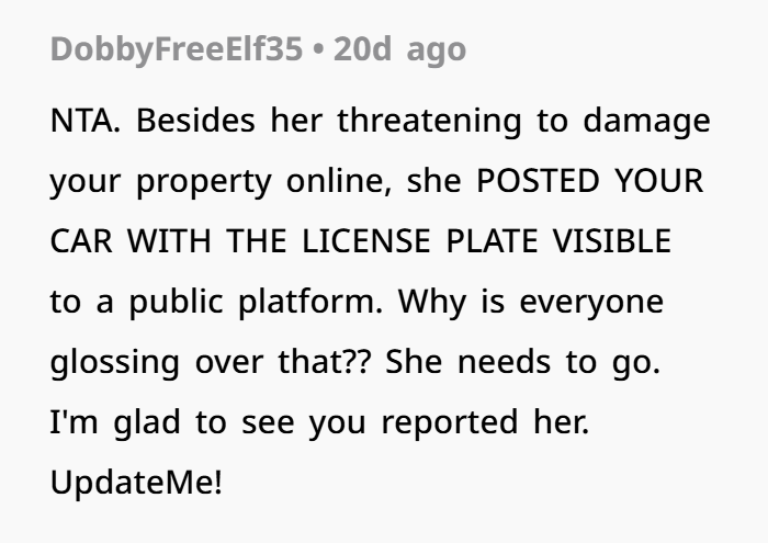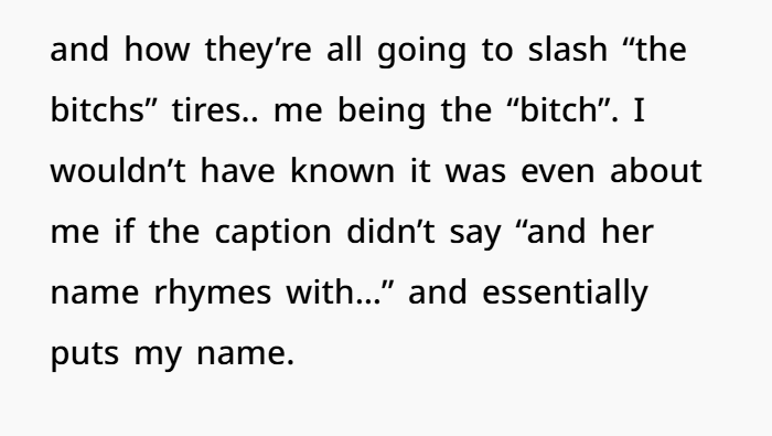 Even more alarming: she posted your car and license plate. That’s not just petty. That borders on doxxing—the act of revealing personal information with the intent to harass or intimidate.