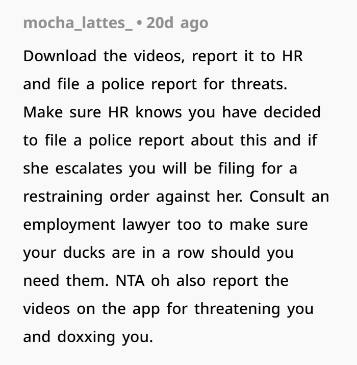One woman recently shared how she had to report a coworker who was posting hurtful and targeted videos about her on TikTok