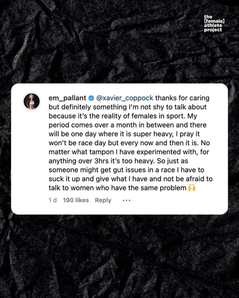 On Instagram, Emma Pallant-Browne — who crushed it with a fourth-place finish at the PTO European Open — opened up about the viral photo that had everyone talking. She said she was “humbled” by the flood of messages she received from women all over the world, thanking her for being real about the not-so-glamorous side of competing while on your period.