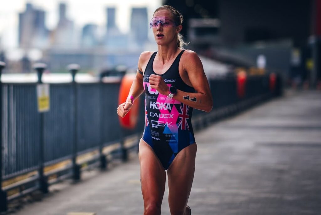 The British triathlete wasn’t hiding — she was celebrating that viral race photo. Emma Pallant-Browne was caught in action, powering through the track in her pink tri-suit, with a small blood smear between her legs. And instead of shying away, she owned it like a champ.