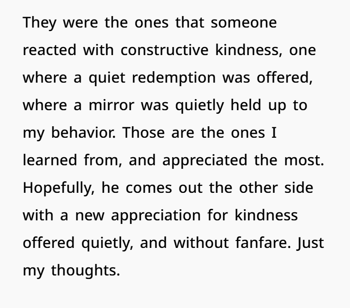 In the end, it seems that the dad did handle the situation in a way that wasn’t overly harsh or dramatic, but rather with a quiet, thoughtful approach. He didn’t escalate things unnecessarily, but also didn’t let the boyfriend off the hook. He handled the situation with calmness and respect—something that’s often overlooked in our fast-paced, reactionary world.