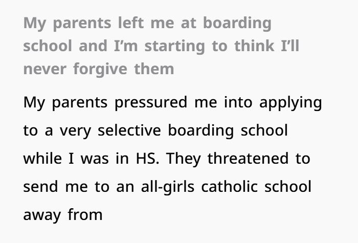 Parents Send Teen Off To Boarding School And Move On Like She Doesn’t Exist Now She’s Not Sure She’ll Ever Forgive Them