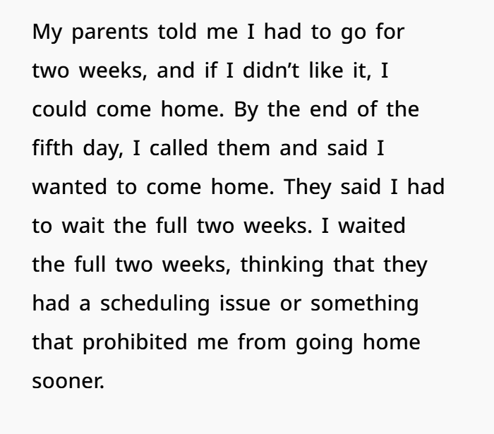 One teen was forced to go to boarding school until graduation, despite her parents at first telling her she could leave if she didn’t like it