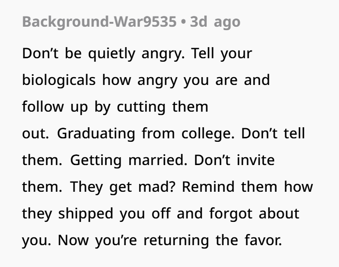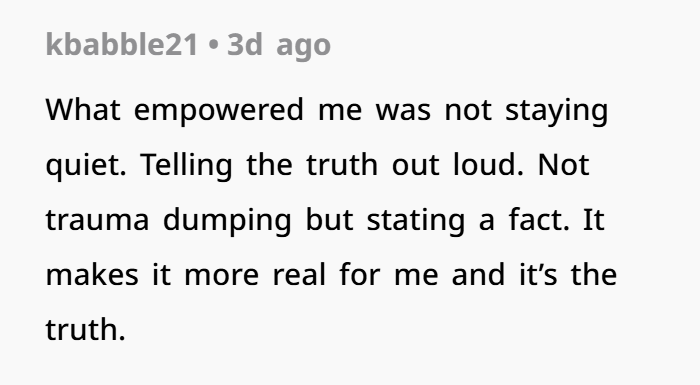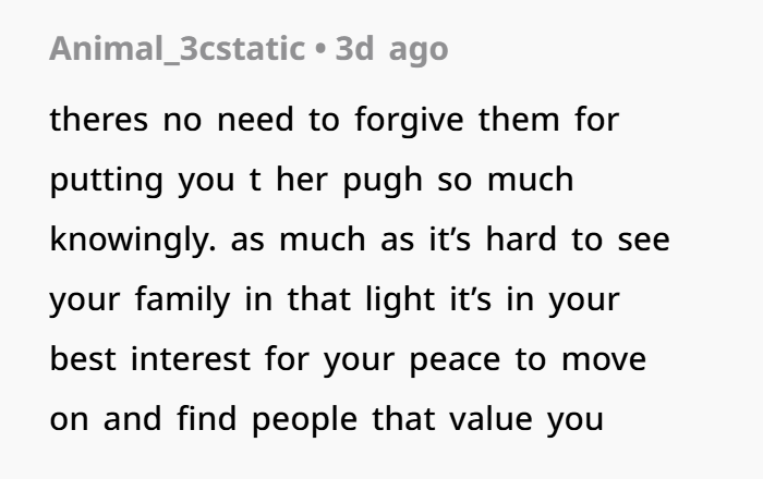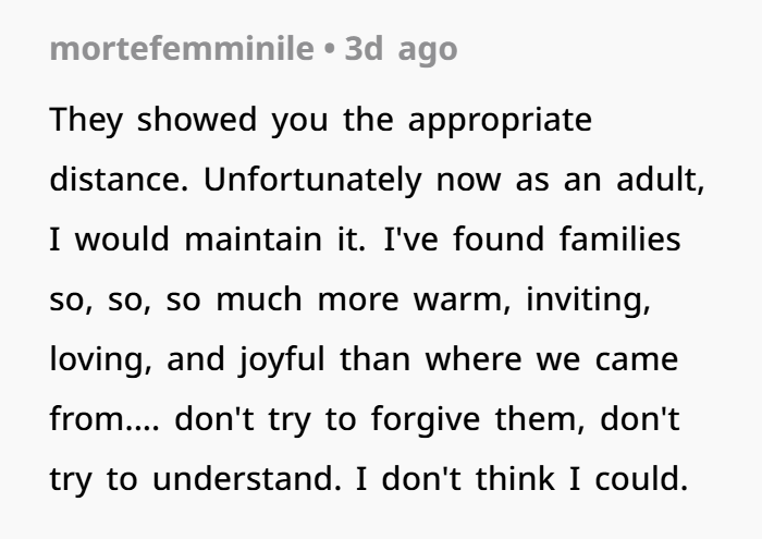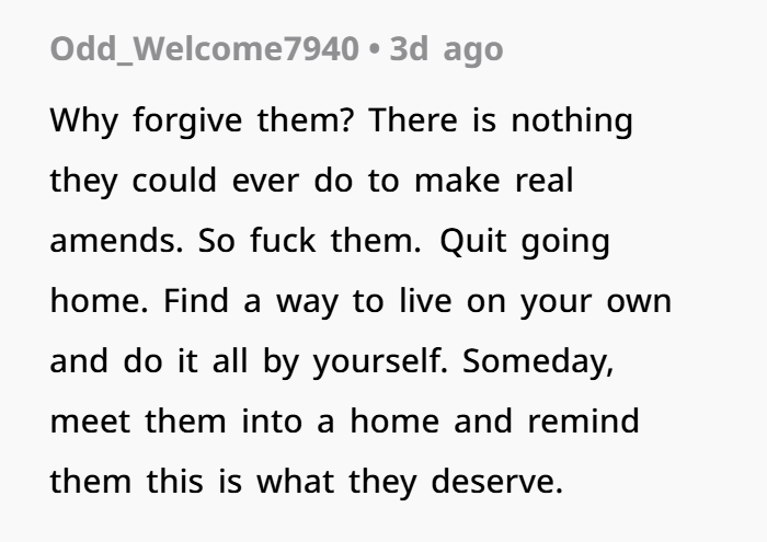 In the comments, readers encouraged the original poster not to suffer in silence but rather to tell her parents exactly how much pain they caused her