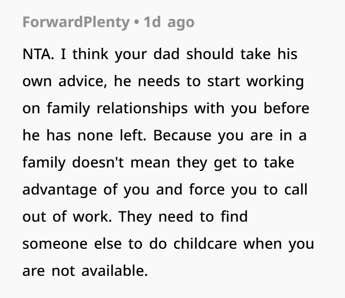 In this story, OP isn’t rejecting his half-siblings out of spite—he’s drawing a line. He didn’t sign up to parent three toddlers. And expecting him to cancel work with two days’ notice is straight-up unrealistic.